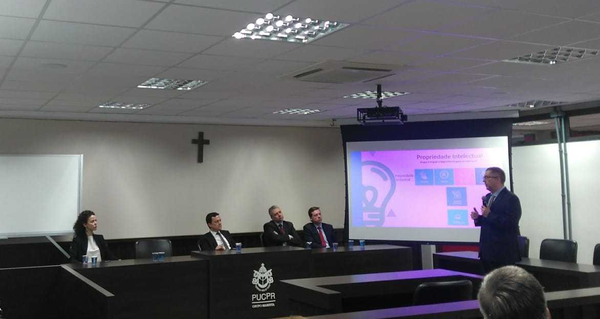 Ocorreu nessa sexta, 29.nov.2019, no Salão Nobre da Escola de Direito da Pontifícia Universidade Católica do Paraná (PUC/PR) a Reunião Aberta das Comissões de Direito Empresarial, Inovação e Gestão e Comissão de Propriedade Intelectual da OAB Paraná. A participação dessas 03 Comissões da OAB/PR, além de ser uma iniciativa característica dessa gestão da OAB de integração entre Comissões, deveu-se ao tema tratado, multidisciplinar e inovador: a “Importância da Propriedade Intelectual para Startups”. O evento contou com participação especial de Gabriel Leonardos, Conselheiro Federal da OAB pelo Rio de Janeiro e Presidente da Comissão Especial de Propriedade Intelectual do Conselho Federal OAB Nacional.